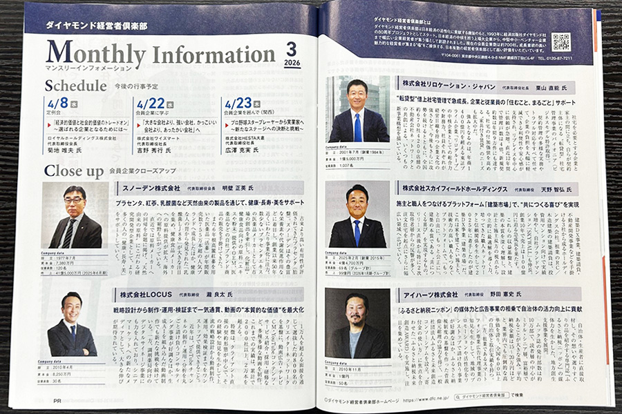 週刊ダイヤモンド「2026年3月マンスリーインフォメーション」掲載、会員企業5社のご紹介