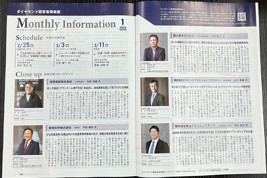 週刊ダイヤモンド「2026年1月マンスリーインフォメーション」掲載、会員企業5社のご紹介